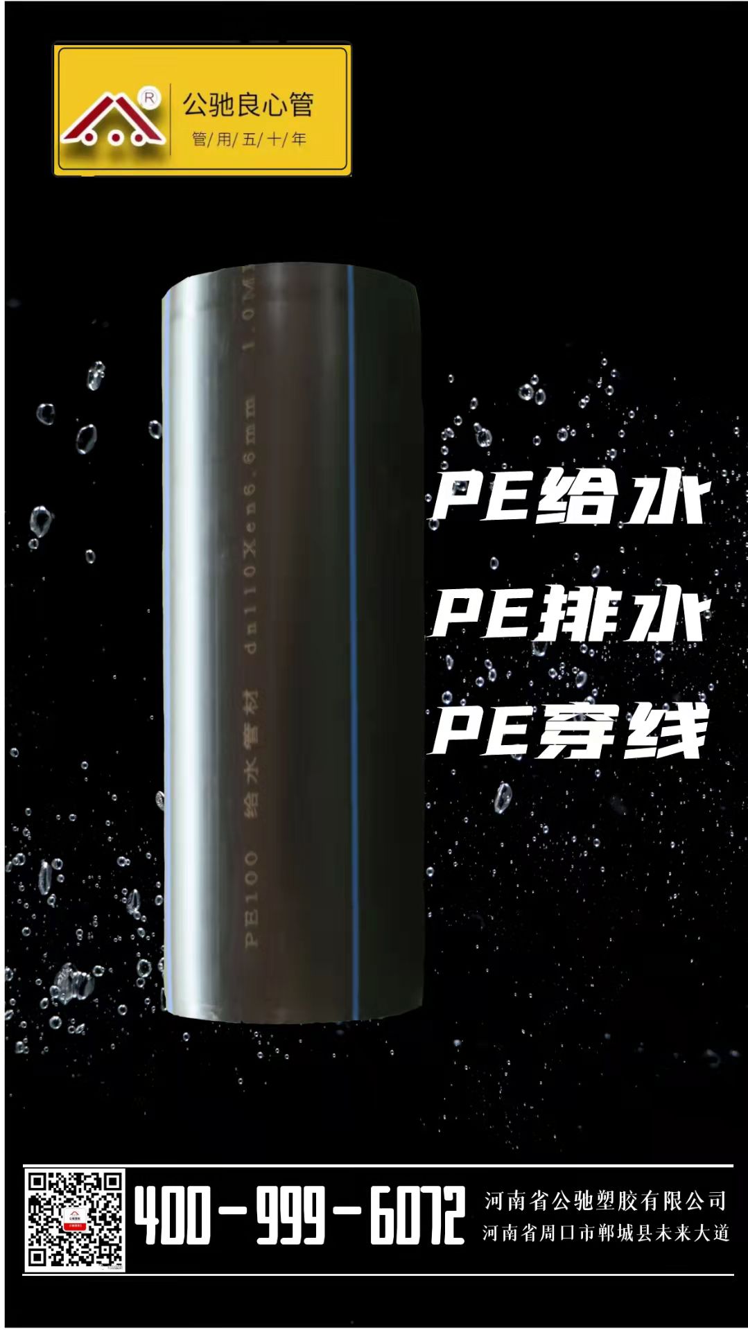 河南省公馳塑膠有限公司主要產品有PE給水管材、管件;HDPE排水管;PE、MPP、CPVC、電力穿線管;檢查井;PVC-U給水、排水管材、管件;電工導管;PP-R給水管材、管件;PE-RT地板輻射采暖管等百余個系列,數千個品種。